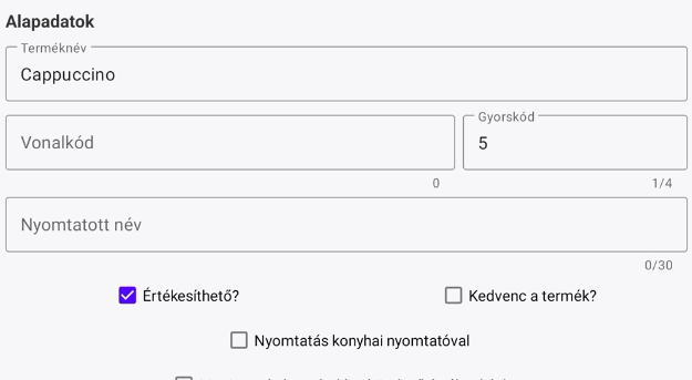 - Vonalkód: Vonalkódos értékesítéshez ki kell tölteni