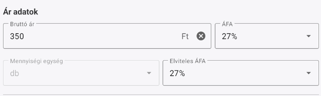- ÁFA: A cikk ÁFA tartalma, amit listából lehet kiválasztani